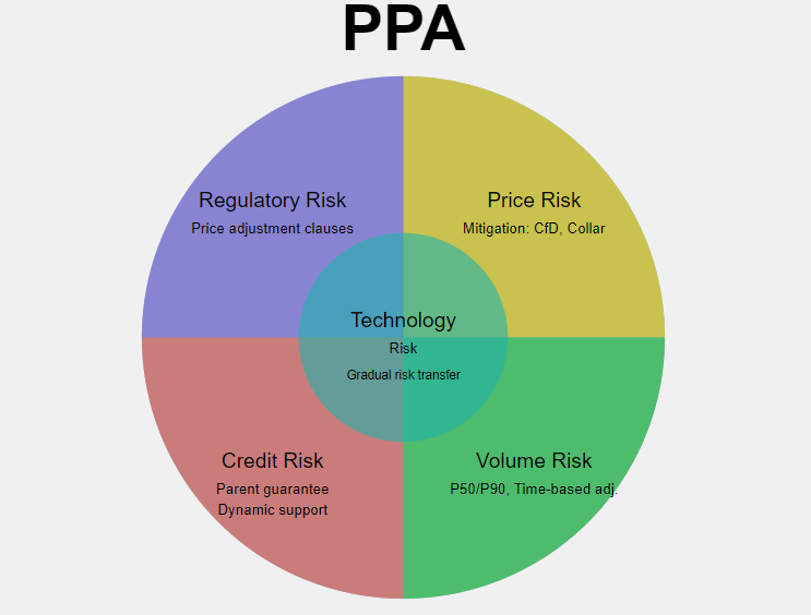 Price, to manage price risk, I've used Contracts for Difference2 structures, where two-way payments are based on market price variations. Tip: To mitigate price risks, consider collar structures3. In a solar PPA, we implemented a collar with a 'shared upside' mechanism. This provided downside protection while allowing for some profit sharing when prices exceeded the ceiling.